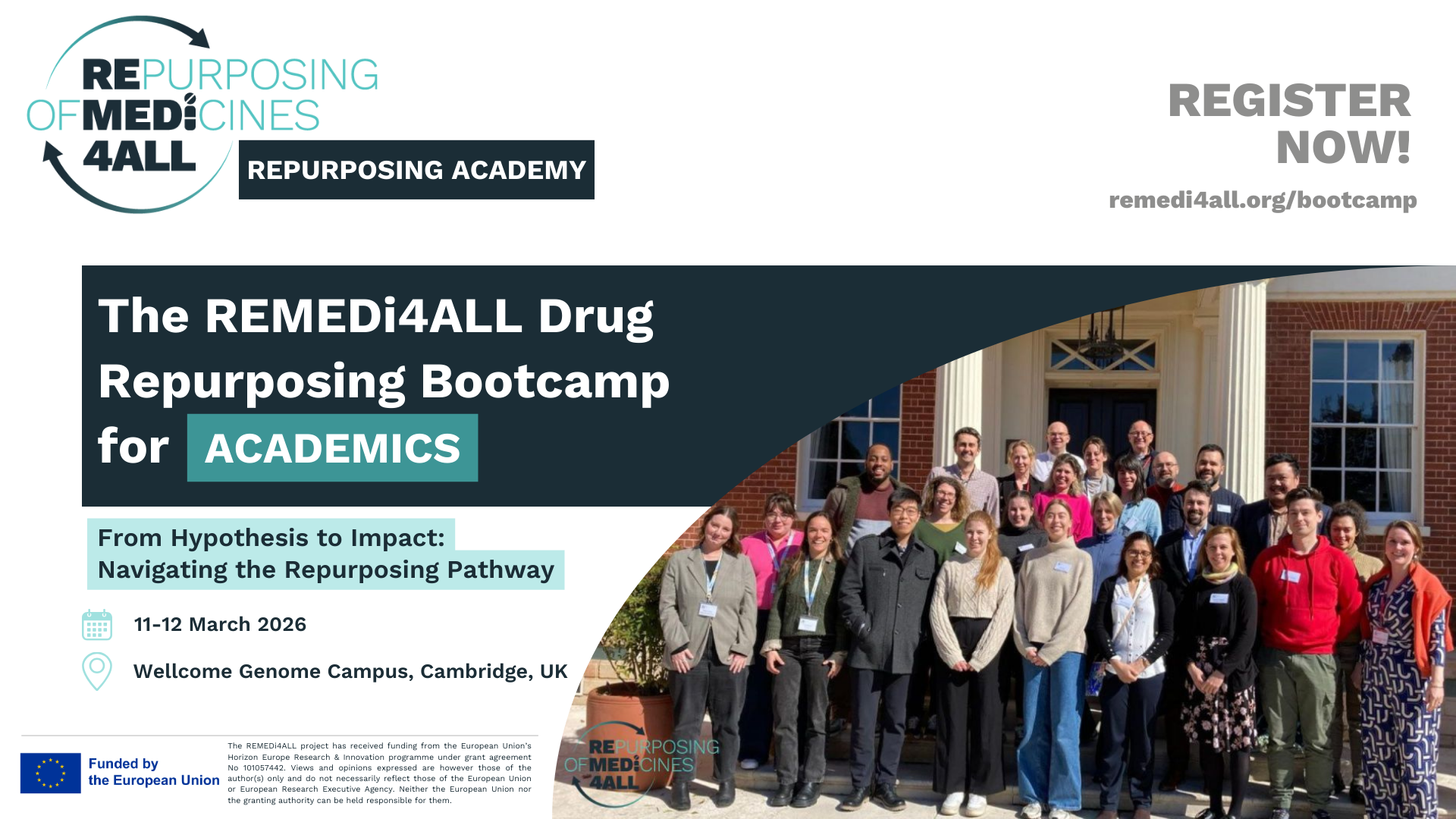 Registrations for the REMEDi4ALL Drug Repurposing Bootcamp for Academics are now open! Register now!